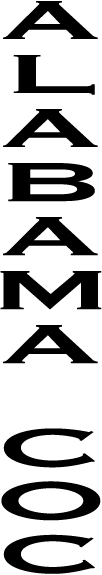 Alabama COC T-shirts are available in black, red, gold, white, and gray; and in sizes from Small through 3XL - larger in some sizes if desired. The T-shirts have designs on both front and back. The designs are illustrated below. All shirts are $18.00 each, plus postage (estimate $1 per shirt). Send T-shirt orders with payment (check/M.O.) to: ALCOC, 1266 Plum St., Prattville AL 36066